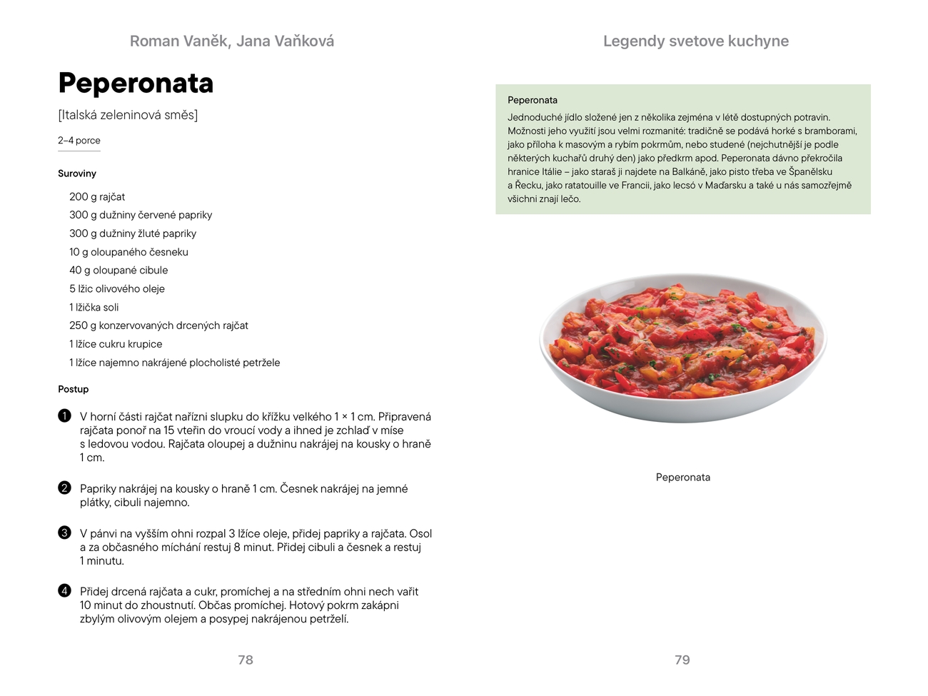 Kniha nabízí nejen nejlepší recepty psané krok za krokem, ale zároveň i jejich příběhy. Pokrmy, které dobyly svět, mají často dlouhou historii a dokládají, že naše touha po dobrém jídle je stará jako člověk sám.