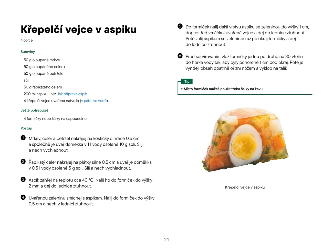 Malá ochutnávka obsahu: Legendy české kuchyně, kterým po generace patří čestné místo na našich svátečních stolech: obložený chlebíček-v hitparádě TOP 16 nejoblíbenějších variant, plněná vejce, šunková rolka v aspiku, hermelínový salát, vajíčková pomazánka, plněné broskve kuřecím, či krevetovým salátem, vaječná tlačenka, bramborový salát v několika skvělých variantách.